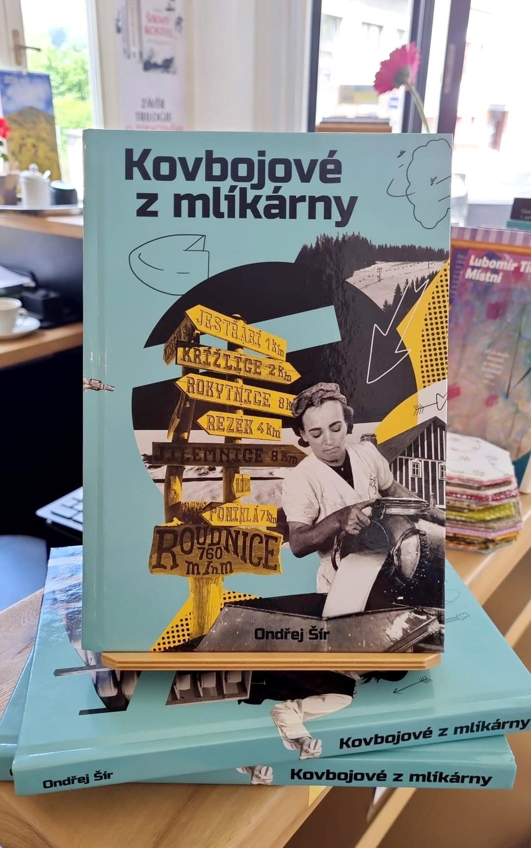 Obálka knihy Ondřeje Šíra – Kovbojové z mlíkárny. Román, který se soustředí na přátelství, odhodlání a snahu uskutečnit podnikatelský sen v drsném prostředí Krkonoš. Sleduje osudy skupiny mladých kamarádů, kteří v 30. letech založí mlékárnu a začnou vyrábět sýr – a kniha popisuje příběhy, pohádky a povídačky z Podkrkonoší, které je na jejich cestě potkávají.