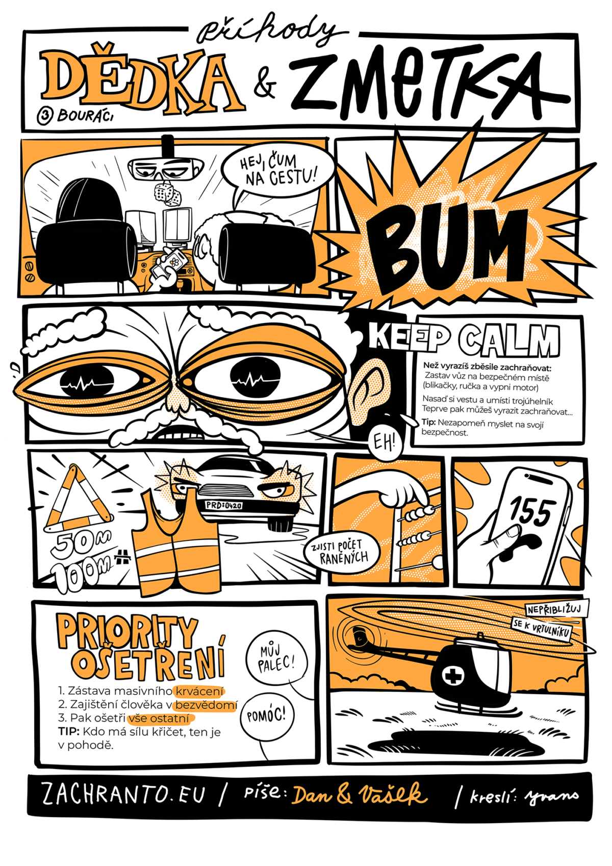 Komiks pro zachranto.eu, projekt který se věnuje osvětě v oblasti první pomoci. Vždy vychází ve dvou verzích, slušné (pro mladší publikum – školy atp.) a ve sprosté verzi, přiblížené běžné mluvě široké veřejnosti a distribuci např. přes výlep v hospodách.
